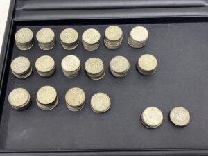 全部で約160枚ほどあり、今は銀の価格が上がっているため、1枚100円以上の金額をお付けすることができました!